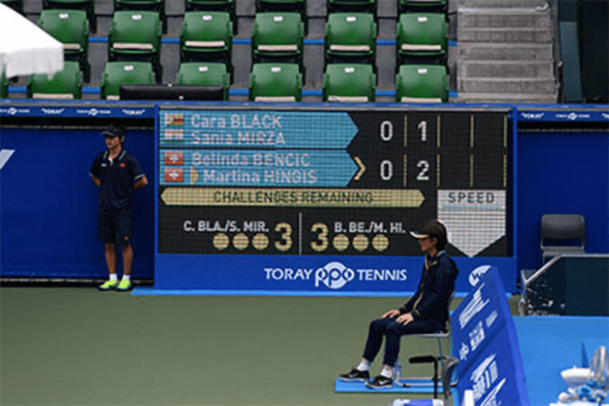 以前は主審に対面するような形でコートの反対側に副審と呼ばれる審判がサービスレットの判定などをしていましたが、現在は国際大会のほとんどでネットにセンサーを付けてレットを判定していることもあり、副審のいない大会が多くなっています。